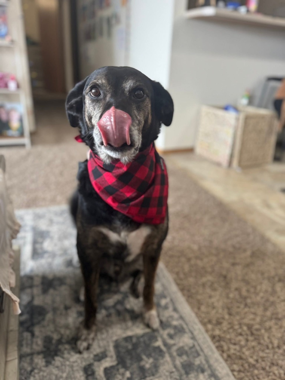 Buddy Boy is living proof that cool only gets better with age. Rocking a salt-and-pepper snout like a seasoned movie star and a red flannel bandana that screams “lumberjack but make it cute,” Buddy is the strong, silent type—until snacks are involved.