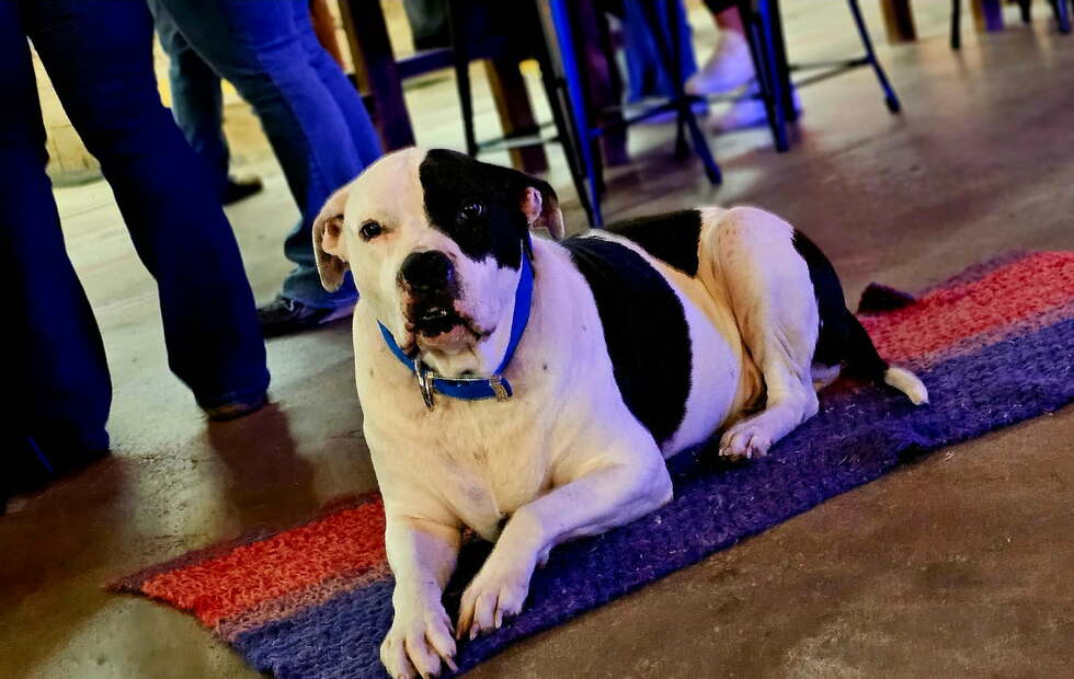 Carl is our mascot here at 608 Axe Throwing Oshkosh! He takes his job very seriously, and you get the full at home dog experience complete with cuddles, kisses and belly rubs!