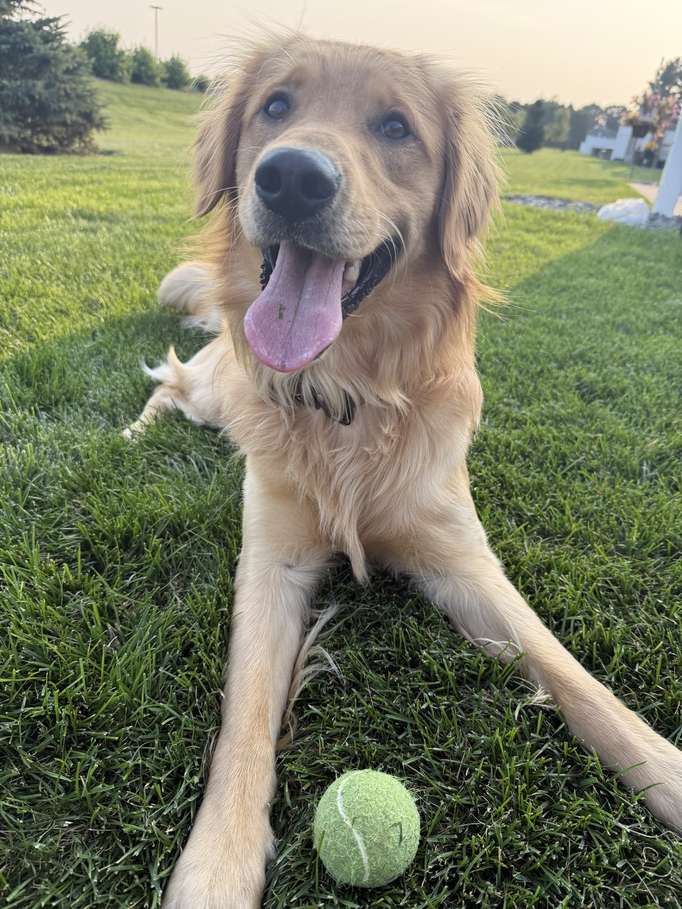 Levi healed our family. We lost our golden retriever Cash 2.5 years ago from surgery complications. He was only 7 months old. Levi is related to Cash and has been our angel pup. He is a very small golden, only 54 pounds and he’s 2 years old. He is the most gentle and loving pup, and is always smiling. He wags his tail so hard his entire back-end wiggles, and this is where his nickname Wiggle Butt came about!
