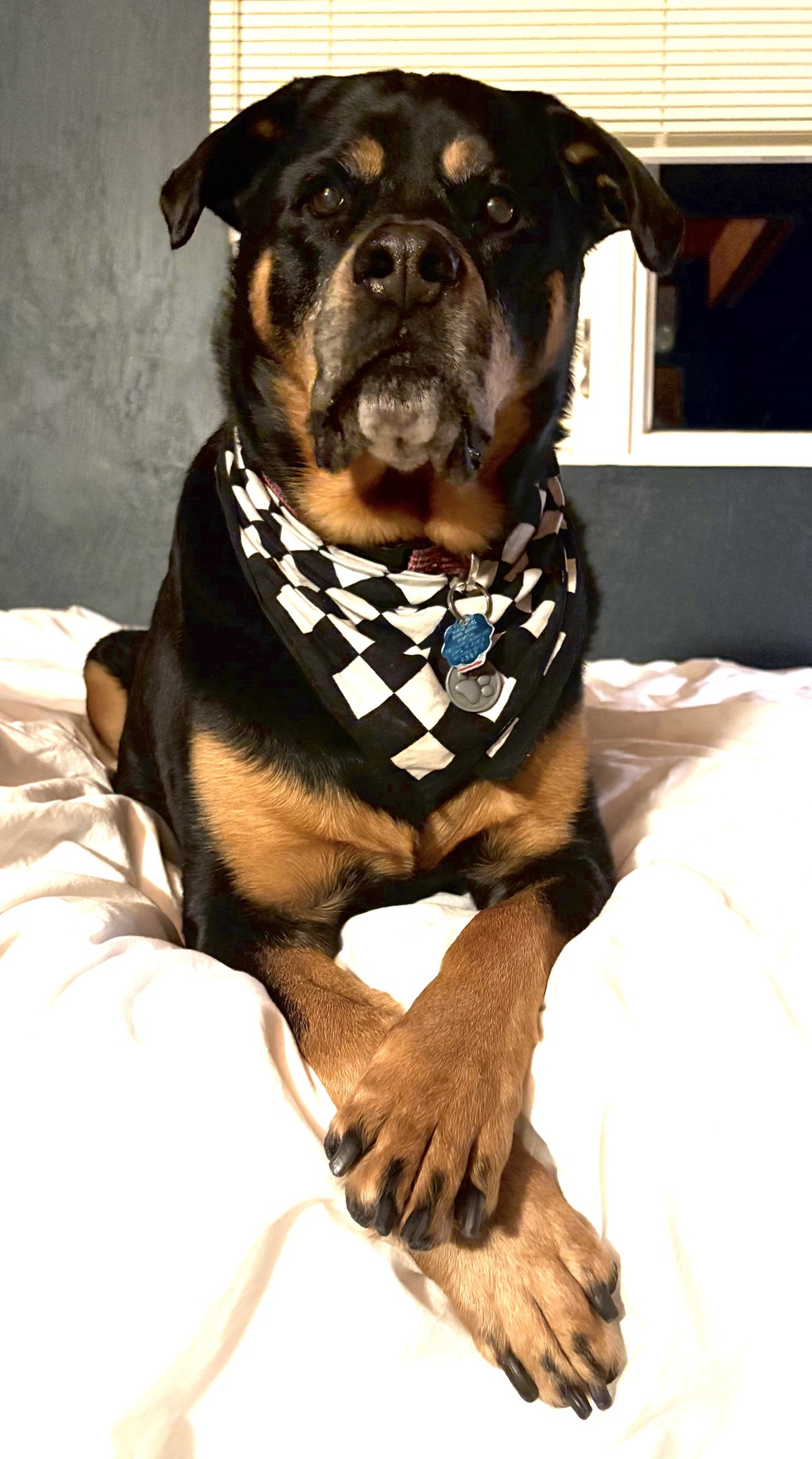 I am 8 years young, 136 lbs and don’t know my waist size. My alternate names include fathead, muffin head, beast and my favorite from mom… pip squeak.