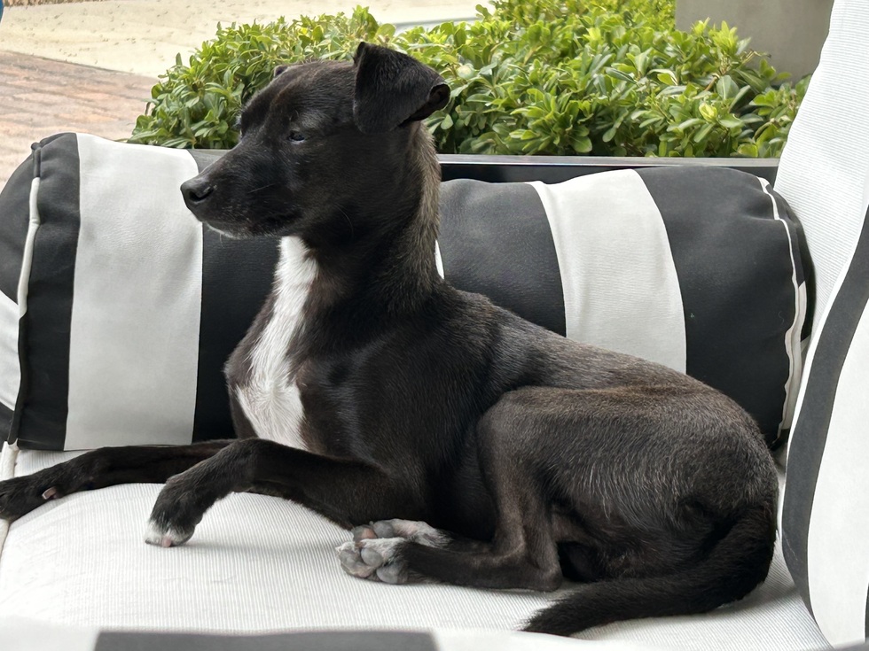 My sister was a volunteer at NMDR. I visited from Las Vegas and accompanied her to NMDR several times. There were so many wonderful dogs, but I kept saying “Don’t let me get a dog.” On our December 2024 visit, we passed by a pair of adorable rat terriers. I was tempted, but they had to be adopted together. We moved on to a nearby kennel where a little black dog on its hind legs was poking its face out through the cage. “Reo” had arrived two weeks earlier from a shelter in NW Kansas. He was a beautiful Chihuahua/MinPin mix. He selected me for adoption.
