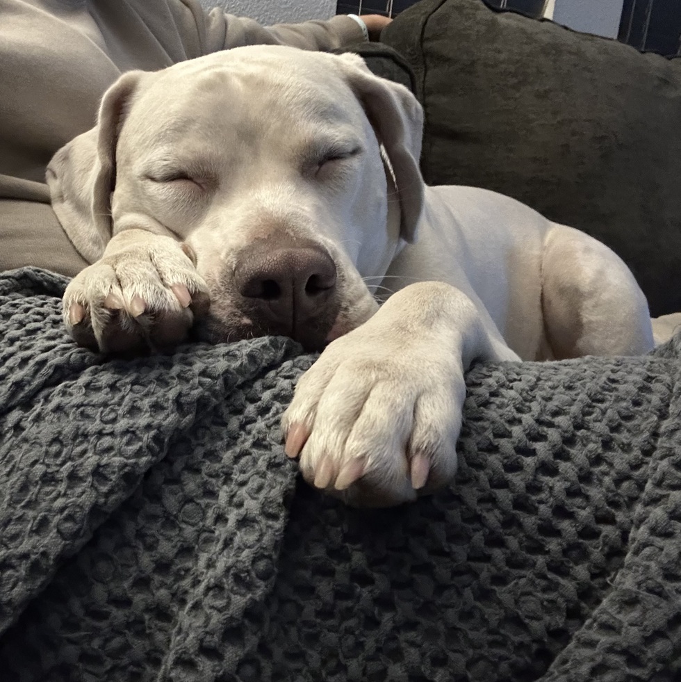 Eddie was found wandering the streets of Polk County and picked up by animal control. We had recently lost our English Lab, Van Halen, who was also a rescue. We wanted to honor him by saving another life! I saw Eddie (Niko) on the animal control website, and instantly fell in love! My husband took our other pups for a meet and greet, and they did great. Eddie had been adopted previously but returned due to his being deaf and having some anxiety. It worked out for us in the end! First weekend was rough, but this gorgeous, deaf American Bully is the sweetest, most loving addition to our family!!❤️ 🐾
