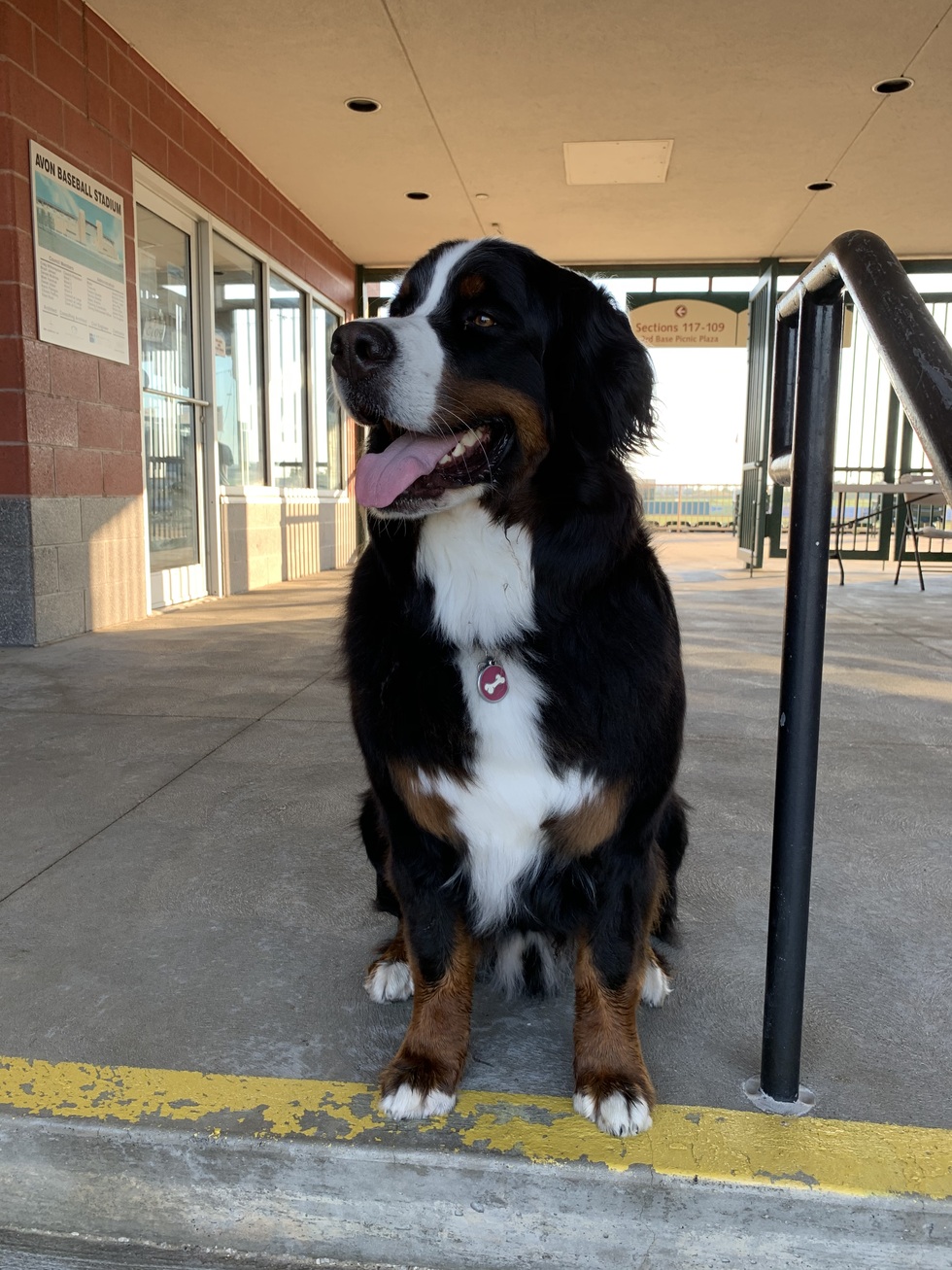 This is Zeus from the Lake Erie Crushers. You can find him at most games, greetings fans and walking the concourse looking for hot dogs! He's a very friendly guy who loves people, other pups, hanging his head out of the window of the Jeep and his stuffed, squeaky blue llama. Come See Zeus at a Crushers game and bring a treat!