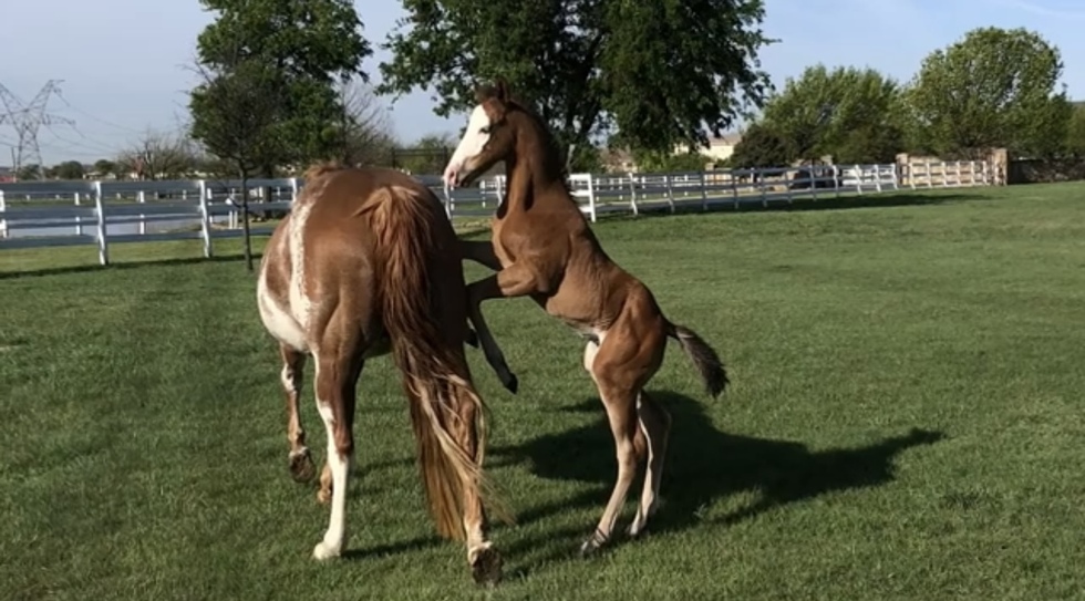 This mare has the patience of a saint with this playful guy!