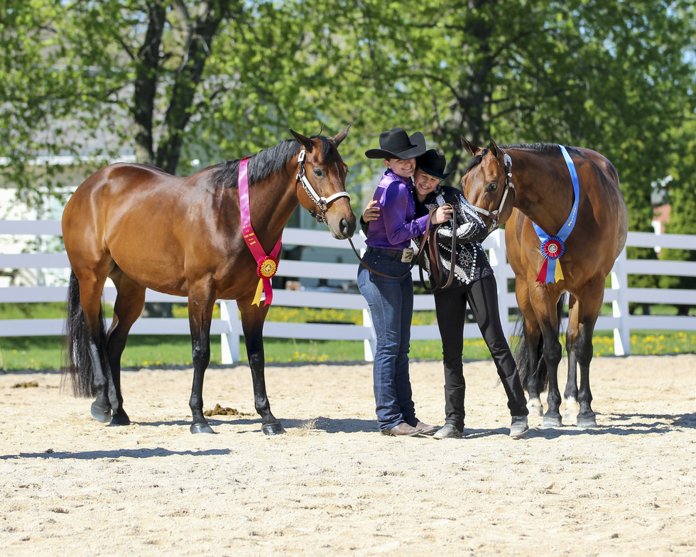This photo shows that you can compete against each other while still supporting each other and rooting for each other to win. Competition can create hard feelings but it can also foster collaboration where riders can help each other to achieve their goals. You don't have to be in the same barn or with the same trainer to help each other and celebrate each other's wins.