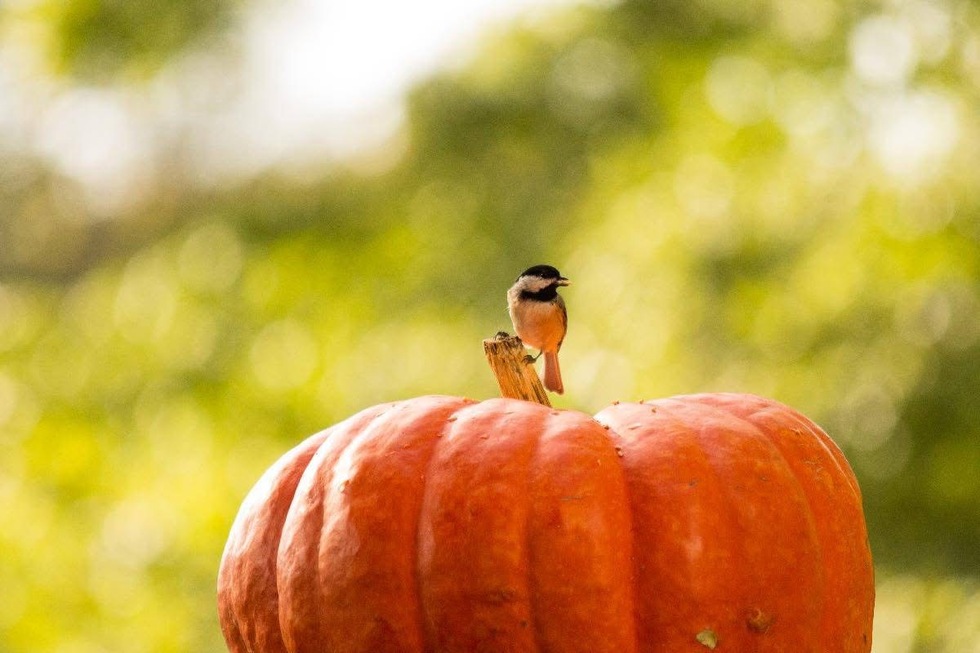 Just a little ChickaDEE-LIGHT on an Autumn pumpkin perch!