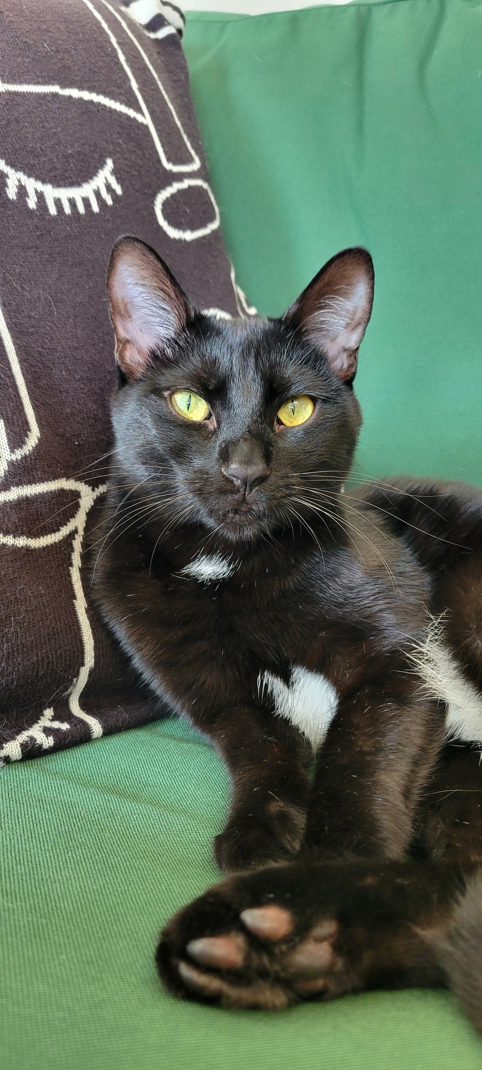 Full to the brim with energy, Bogart loves nothing more than chasing his favourite crinkle ball toy (which he may or may not have stolen from his big brother, Oskar). When he's in the mood to play, he never fails to bring over his latest conquest and drop it at his mom's feet and let out a little chirp to remind her that her real job is being a cat mom. He could play fetch for hours if you let him, running at full speed after his ball and proudly trotting back with his prize in his mouth. His other hobbies include being the chattiest barista assistant to his mom, supervising her morning coffee order and offering plenty of advice. Once he's exhausted himself by practicing his parkour skills, you can find him fast asleep in his hammock or curled up under his mom's chin while she watches TV. A sure-fire way to wake up Bo and have him at your feet in 5 seconds flat is to open a bag of his favourite treats - sardines!