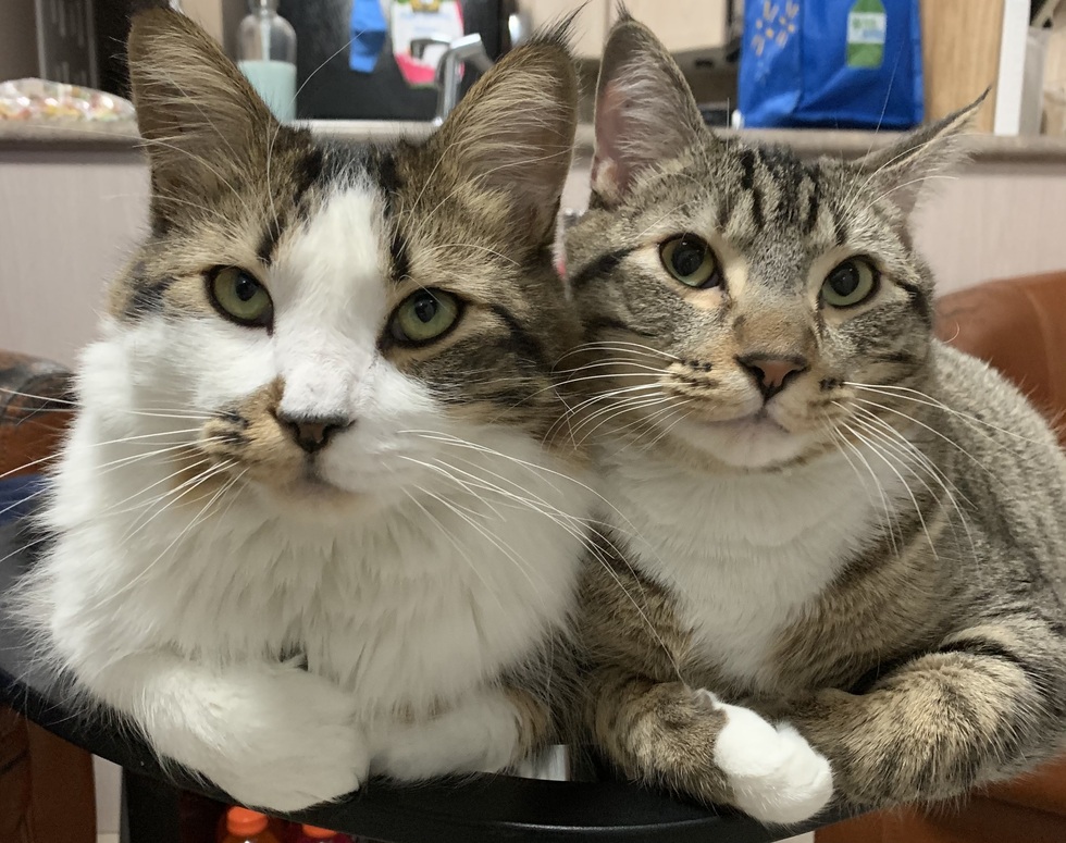 These boys were born under our daughter’s deck in rural Alberta. To save them from a risky existence as barn cats, we flew them home to our house in Oakville where they lead safe lives full of love. They are wonderful boys who we would be lost without!