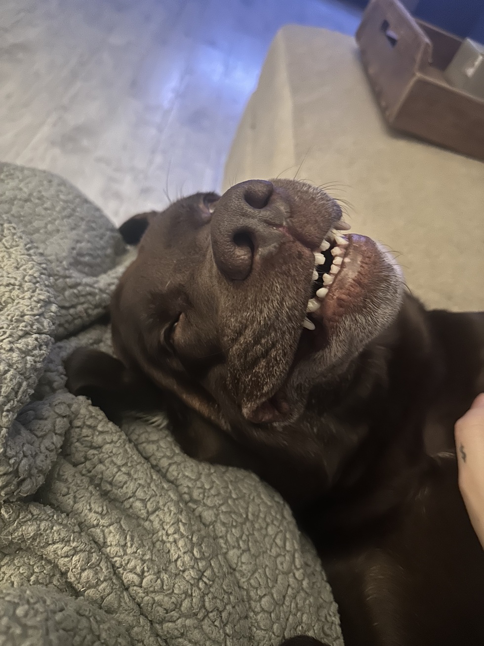 We adopted Mr. Doug in 2025 from Lost Boys Hope and he has been the BEST boy in the world. He loves naps and laying out in the sun, hikes and sniffing the world around him, and of course belly rubs. He has big beef with squirrels, but with lots of training has become such a good and calm boy when we come across his one of his enemies on our walks. Douglas is surprisingly not a huge fan of water, he’s tried swimming a few times and has been very brave but definitely prefers dry land. He has a big loud snore that can wake the whole house, and has no problem awoo-ing right at you if we are running behind on dinner or walkies. He is the best boy.