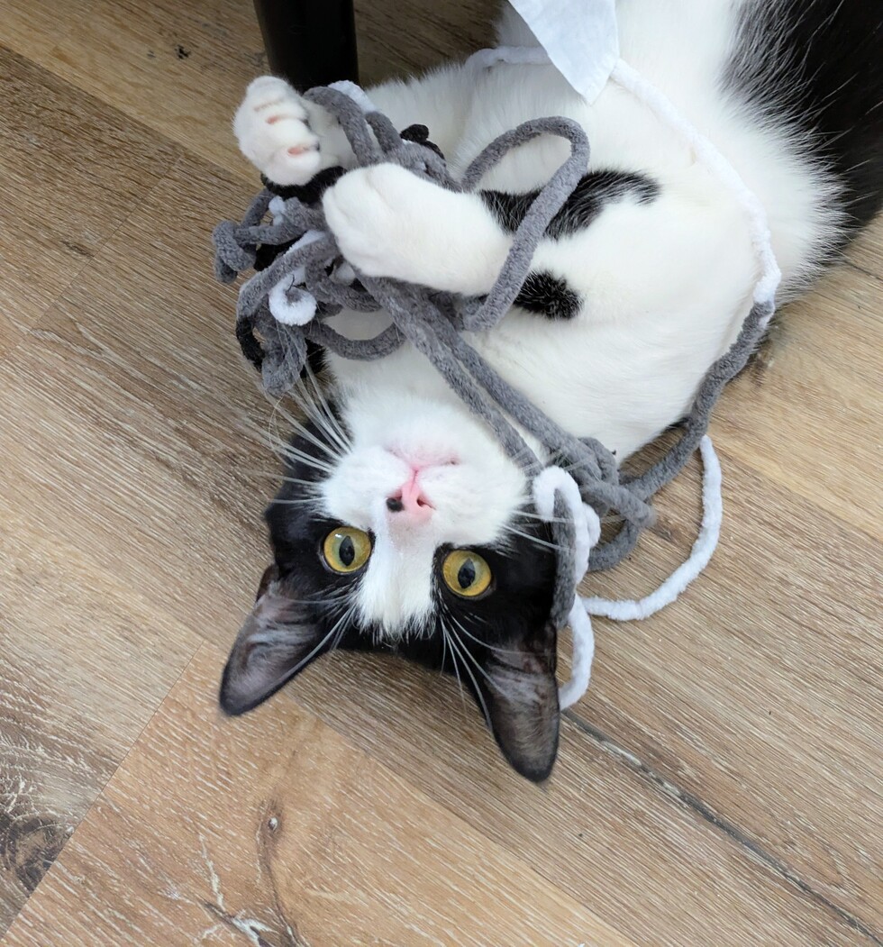This is my handsome boy Dante. He is strong independent tuxedo cat. He loves his treats and his toys. It's never a boring day with my dear Dante.