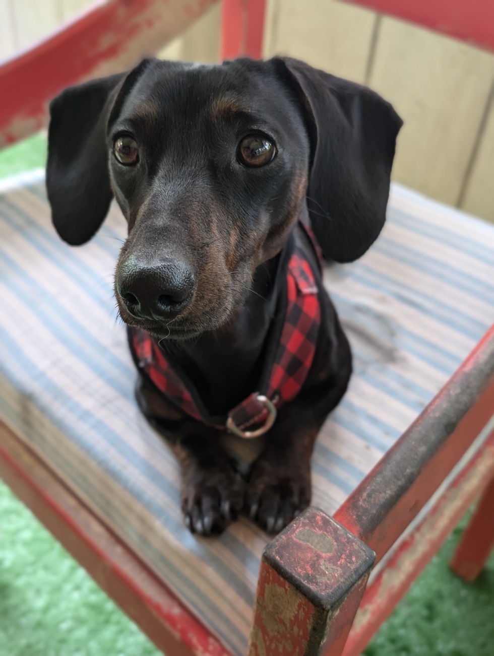 Gordon is full of energy and love. He loves spending his time outdoors and makes it his job monitor squirrel activity in the neighborhood. He loves to play with his older brother, a dachshund named Franklin, who is actually his nephew - according to the family tree. Gordon isn't phased by unfavourable weather like most dachshunds; he will spend time outside in the rain, and will spend an hour creating a walkway or tunnel after heavy snowfall. He has so much love to give but knows not everyone likes their face being licked, so he is happy to give "air kisses" by flapping his tongue around near a face without actually touching it. He isn't great at eye contact, but finds a way to connect with people by resting his head on their face when the person is lying down or in an accessible place for him. We love our Gordon!
