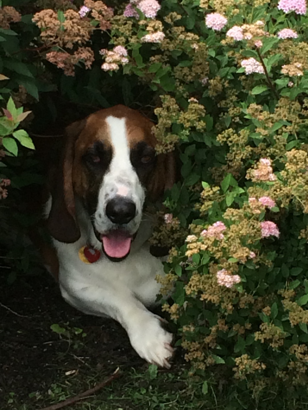 Benny is a basset mix; we are positive he is mixed with St. Bernard! He weighs 84lbs; and is a big loving teddy bear!