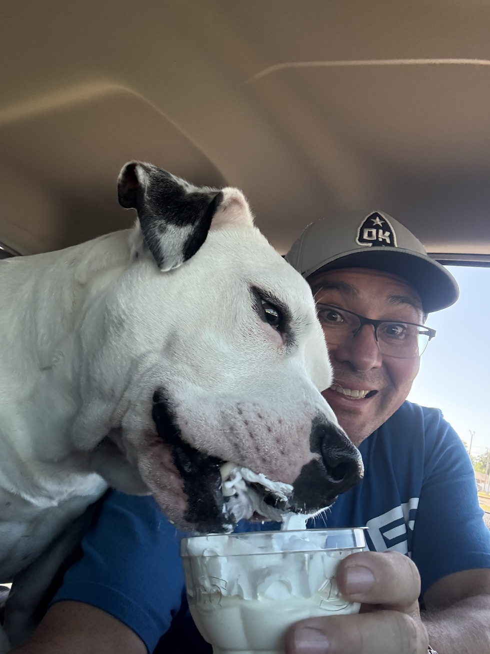 I have the best parents and a grandpa who loves me so very much! They take me for rides and walks everyday they can. I especially love the truck rides with grandpa and getting pup cups!!