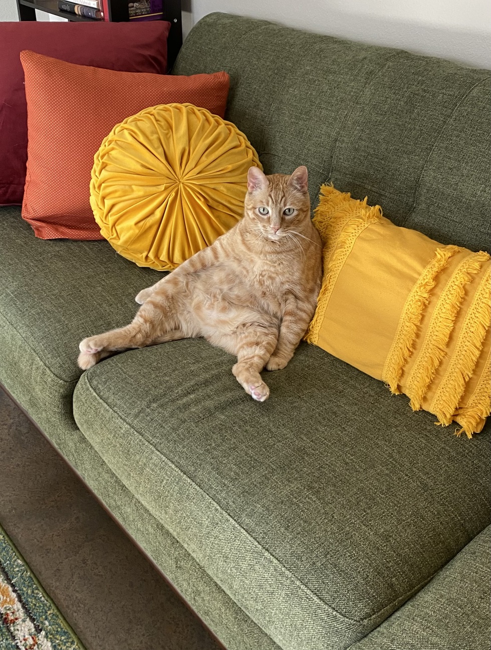 Randall may not be the brightest boy, but his wonderfully bulbous form grants him many gifts. One snuggle with him has the power to put any mortal into instant slumber. His deep purrs and expert biscuit-making can soothe any hurt. He is generous with his flops and belly pets, and his tankard of a gut harbors no ill will toward strangers. He’s just a big ole sweetie.