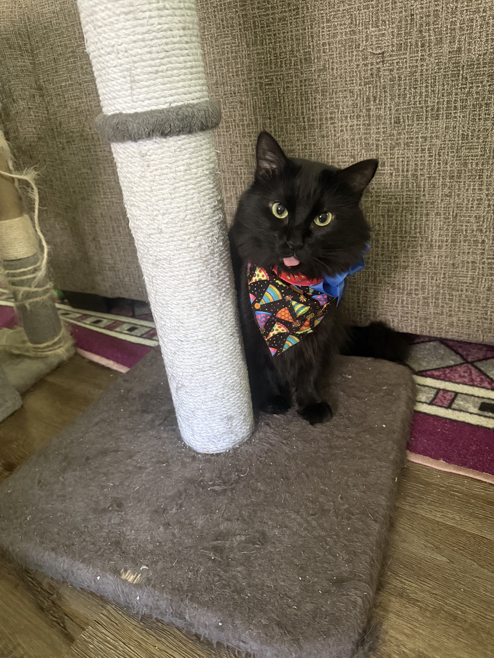 Darmani is the sweetest, most shy fluffy boy! He loves his scratching post and he loves being scratched while he scratches the post! He always shows his little teefs when you scratch his head. Darmani loves wand toys and treats!