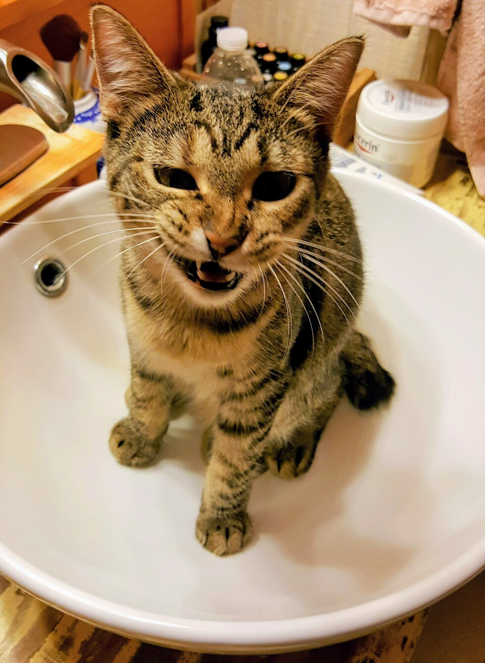 Daphne is too smart for her own good. Her little bob-tail nubby twitches so you know when she is feeling feisty but she is all sweetheart and chill. She is easing into her older years with grace.