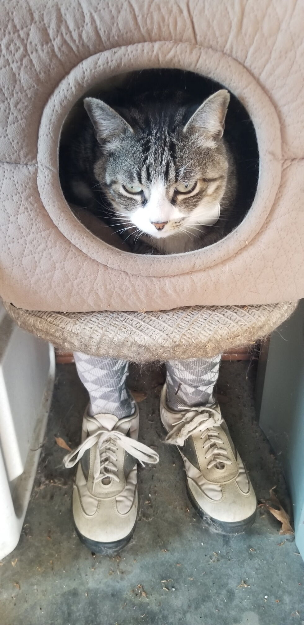 Although I am against letting cats outdoors, there is nothing we can do to keep him indoors, he lurks, hides and darts between our legs anytime the door opens and forget trying to catch him!