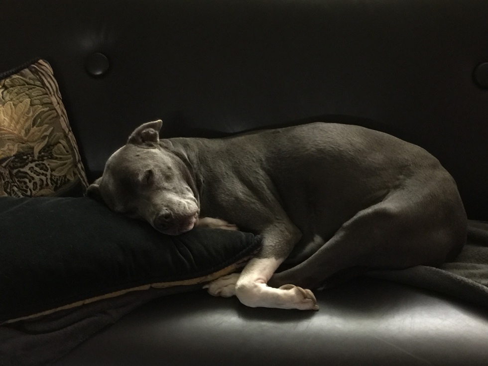 Baxter on his sofa