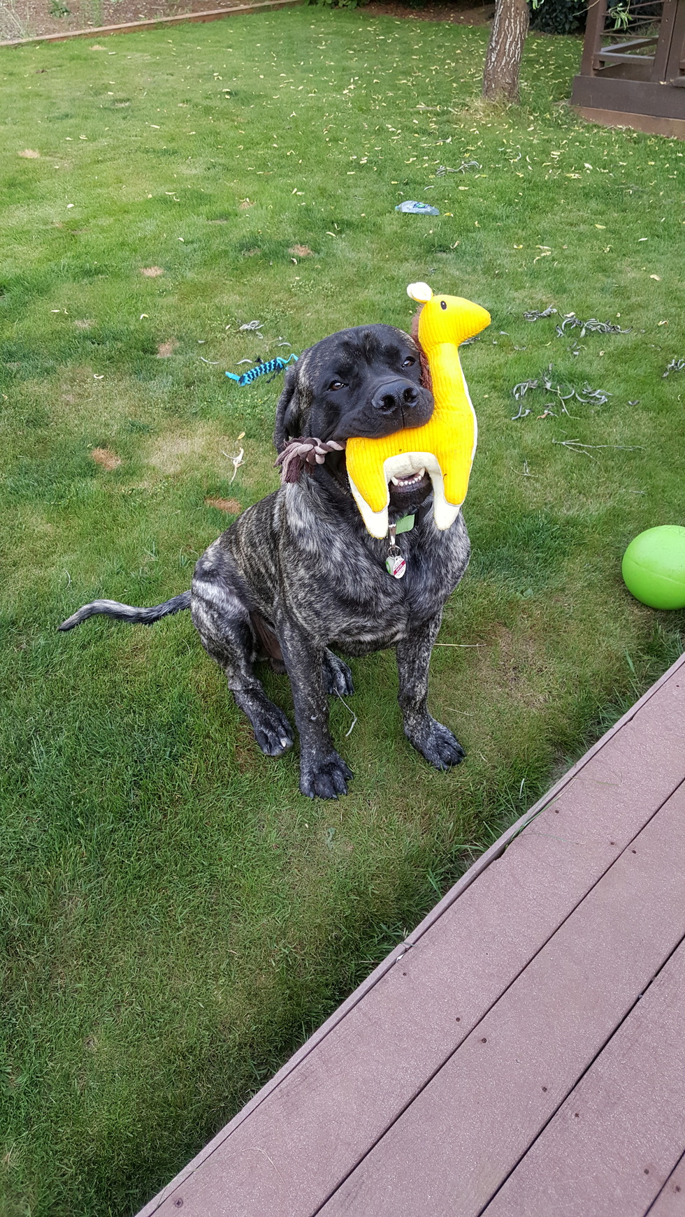 Photo CaptionSo happy to get a new toy!!! 10 month old English Mastiff puppy.
