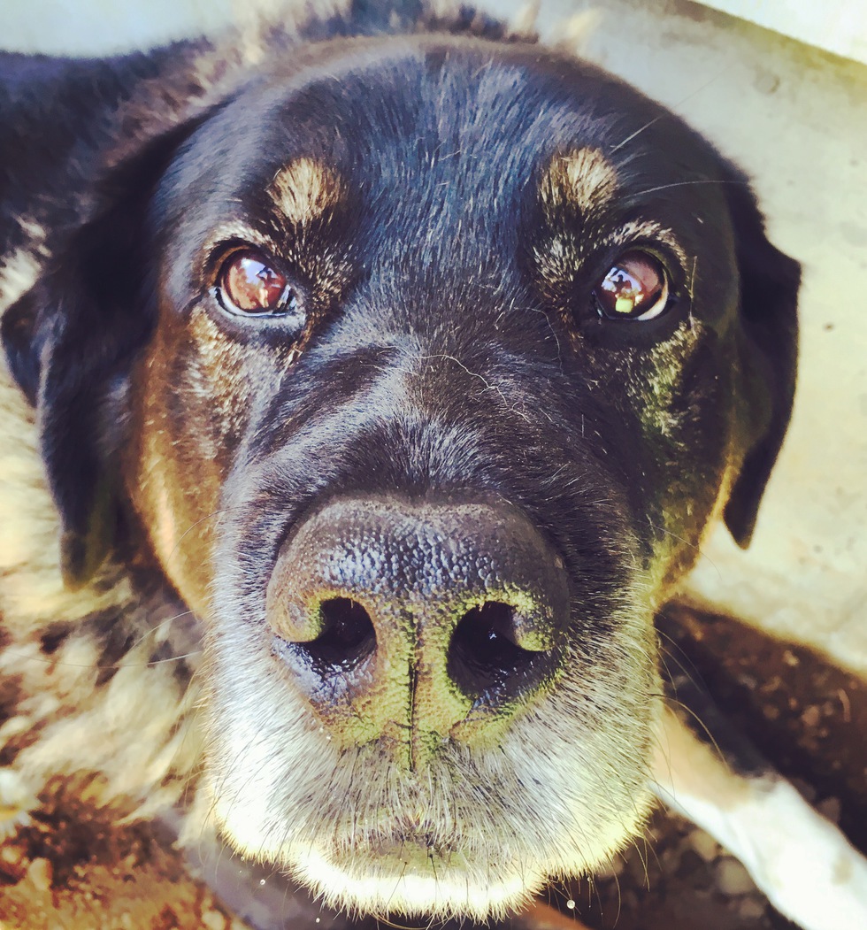 Meatie is a 100# Bernese/Rottweiler mix we adopted from OHS in 2013 after he was surrendered for "barking too much". He now lives a life as flock guardian to over 100 rescued barnyard animals at our nonprofit animal refuge along with three other rescued dog buddies. He loves naps and dirt baths and cantaloupe and belly scratches.... And barking!!!!!!