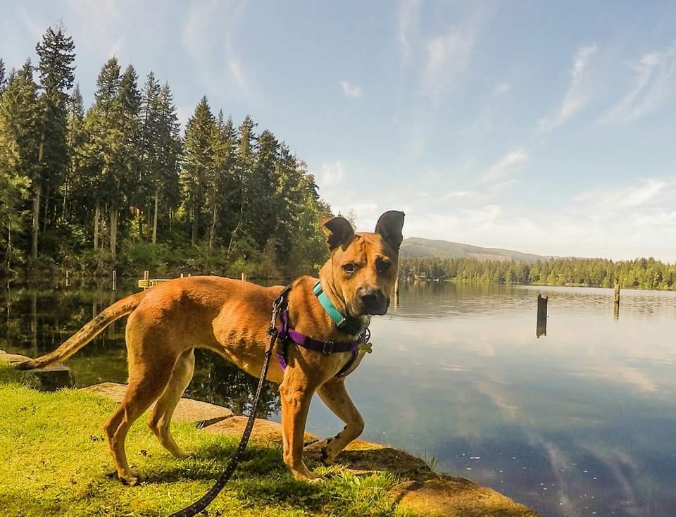 She came in to Oregon Humane on the 2nd chance truck from another kennel where she wasn't adapting; underweight and scared. Now she is living a great life after gaining almost 20 pounds, hiking in the mountains of Washington, and living in a house filled with love for her.