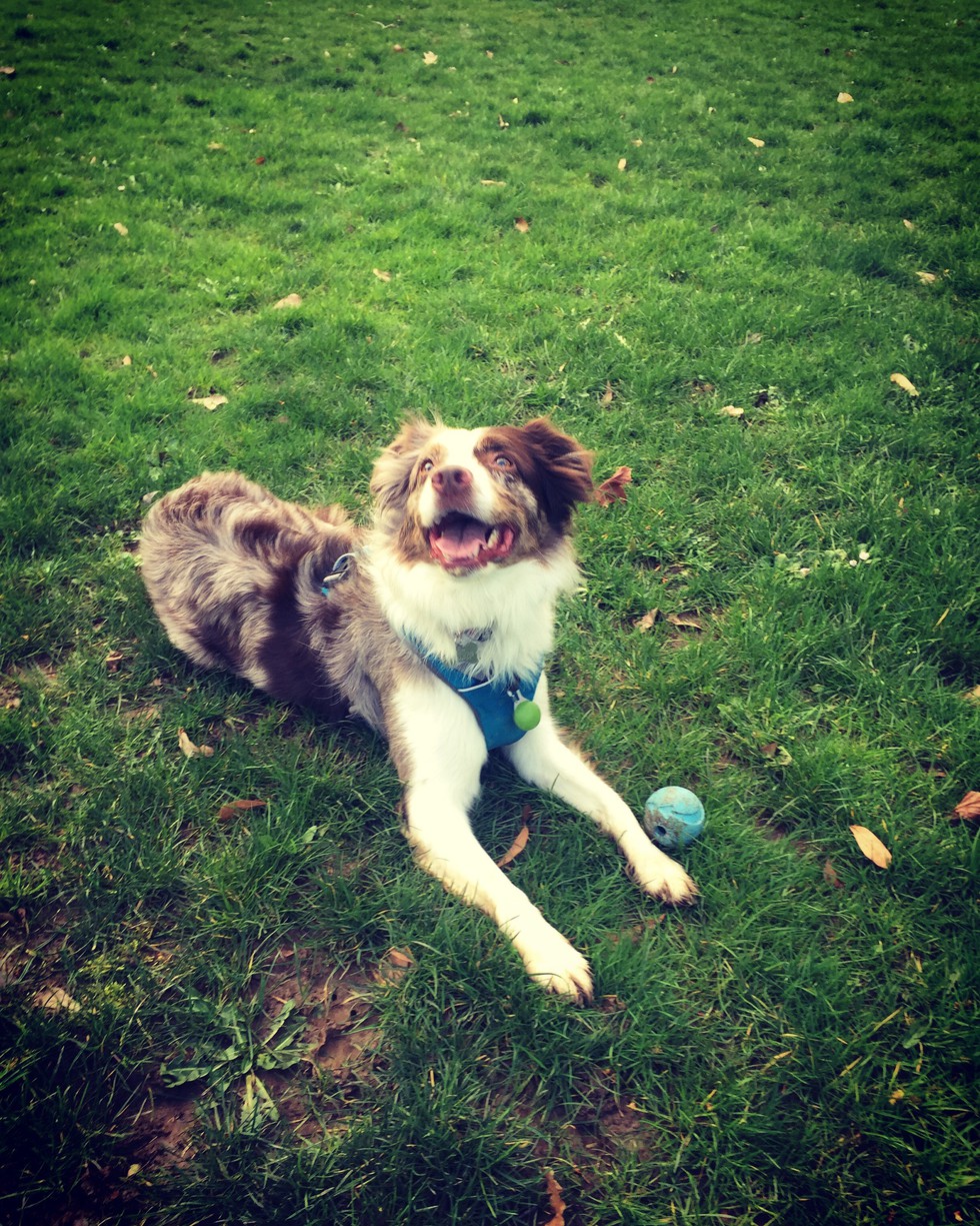 My mom rescued me from a shelter after another family couldn't take care of me. I feel so lucky to have a second chance and I love my hoomanz and my ball so much!
