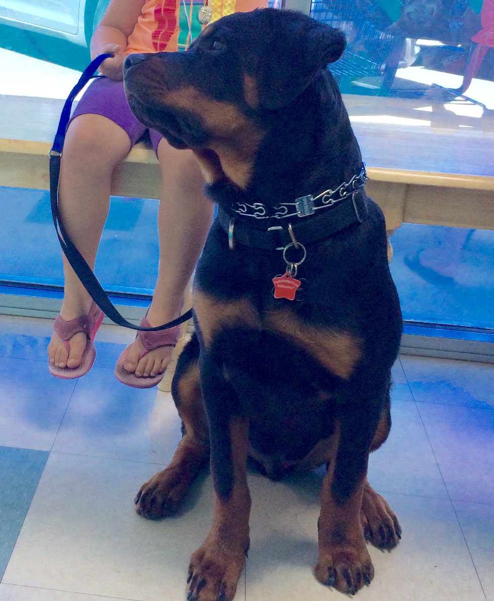 Our big love, 60 lbs at 22 weeks, sittin pretty at the vet!