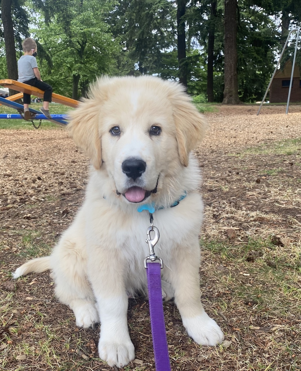 Your Pet's Story or BioTimber Bear Fauci Schwab is a 14 week old Golden Pyreneese who is a dog of the people and dogs. He is laid back and accompanies us everywhere including the local playgrounds. He loves attention from anyone who is willing to give a belly rub!