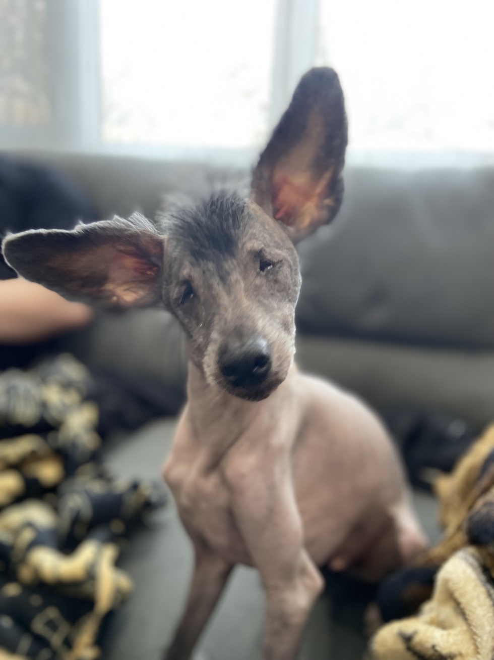 Bonsai was born without eyes and surrendered to a rescue. I saw a video of him online and applied to adopt him. My husband and I fell in love with his outgoing, joyful and hilarious personality. Bonsai has never let his disability define him and is truly amazing. He loves to hike, cuddle, bark at birds, spin in circles, play fight and say hi to everyone he encounters.