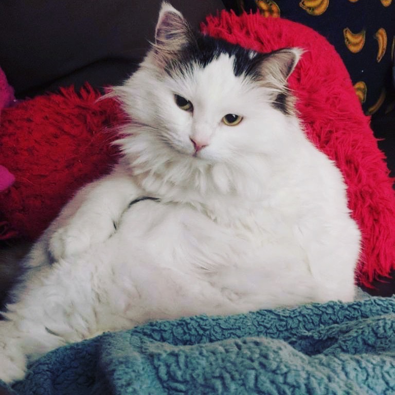 Belle is extremely friendly and loves to be around people. Her favourite pastimes are cuddling, trilling, and showing off her 26 toes. She brightens the mood of anyone she comes into contact with, but has proved to have an Alpha personality around dogs, showing who's in charge (it's Belle).