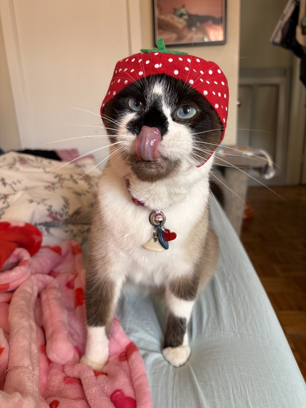 Angus was adopted from the OHS as a kitten. He loves his sister, wet food, purr pop treat, playing with post it notes and chasing springs in the bathtub! Angus had a rough start to life after being brought to the shelter barely alive but he pulled through like the determined little fighter he is! Angus loves burrowing in blankets and warm laundry, rolling around on the concrete deck, and chasing bugs. Angus loves to give love to anyone he meets!