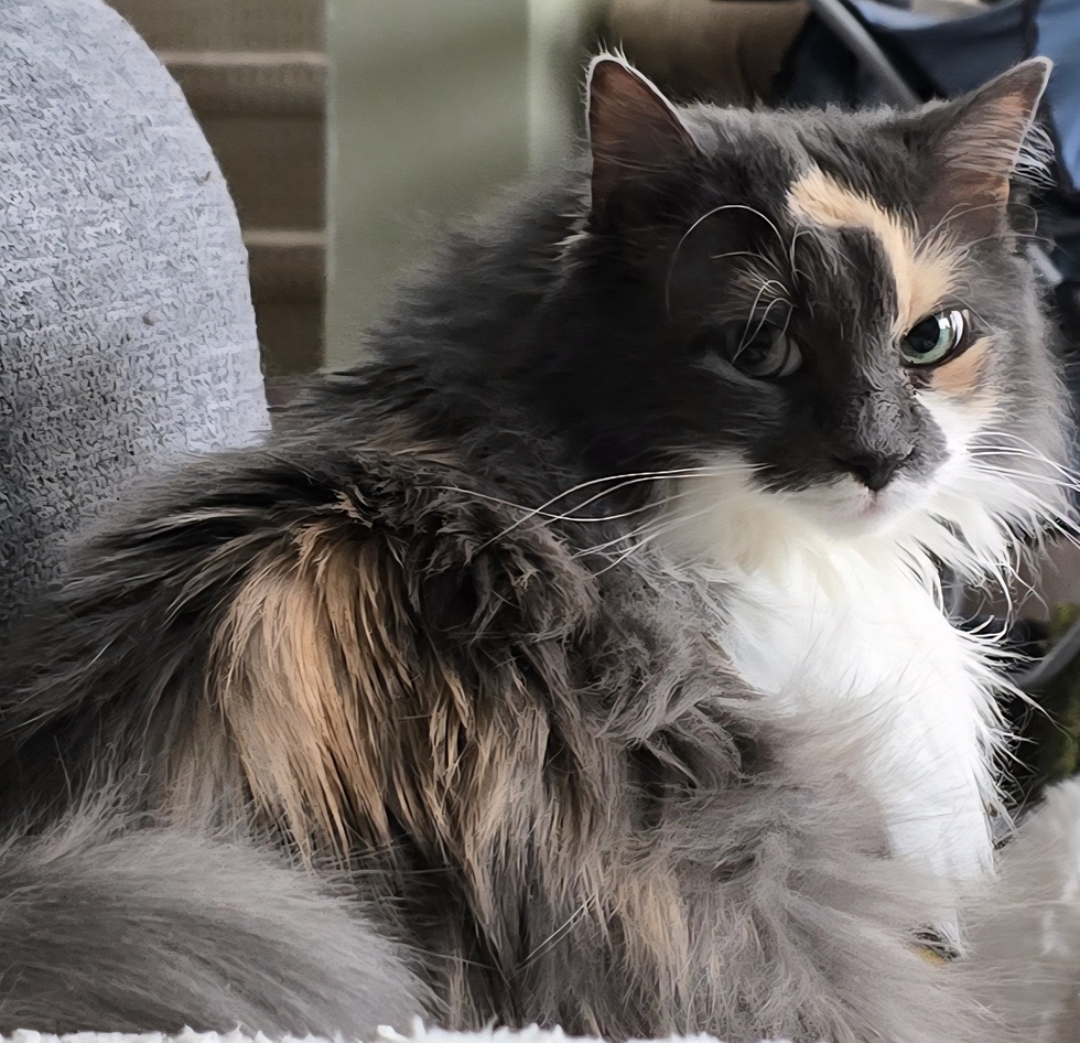 June was found at a week old on the street and the rescuer couldnt get her to feed so another rescue who had just had kittens adopted her. June hated people. All people. We adopted her and hee adoptive mom and after 2 months we woke up to June on the bed. She hasn't left my side since. We have a third baby named Snoop Dogg Catt and he and June are best friends. She loves to play with her round automatic chase toys and her stuffed heart. She loves to hide under blankies and get pets. She loves to talk to me and is even a little less afraid of strangers who come in the house. She squeals with every move and it's beautiful.