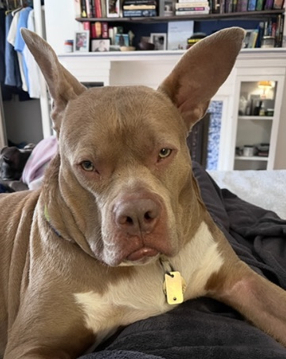 Grindy had a difficult beginning in life but made his way to Animal Friends as an older puppy. He waited 18 months there and then he came home with us. Now, this big baby has a little doggie sister and a whole human family to love him! Grindy is a happy boy.