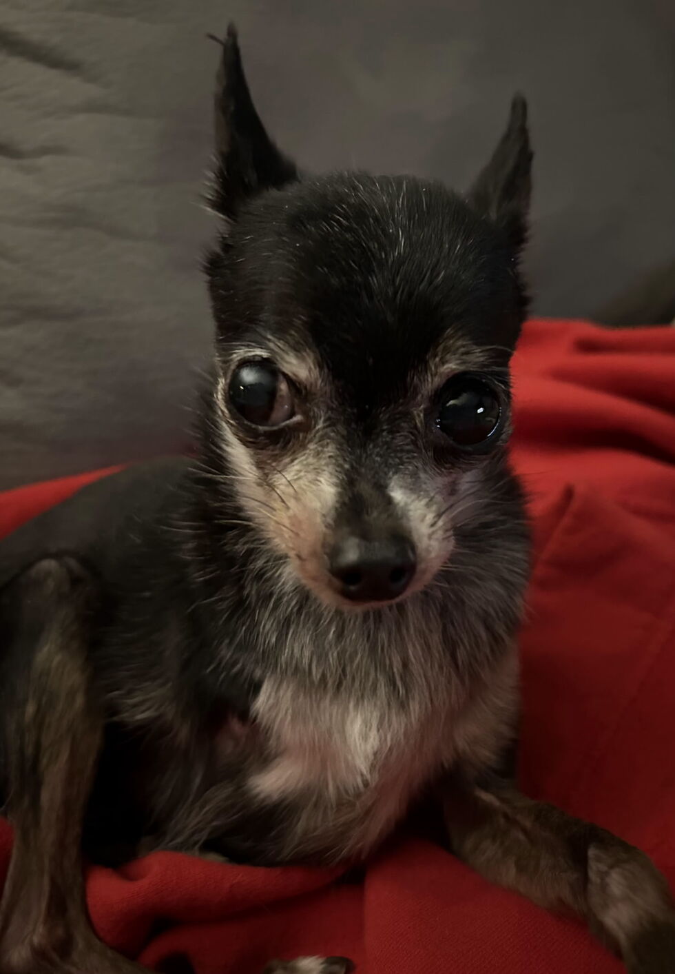 Cookie is an 18 yr old chi who needed the care of Animal Friends when her owner lost her housing. She is a tough little lady, living with two workable limbs, but loves life in her caring foster home where she will stay for her final years.