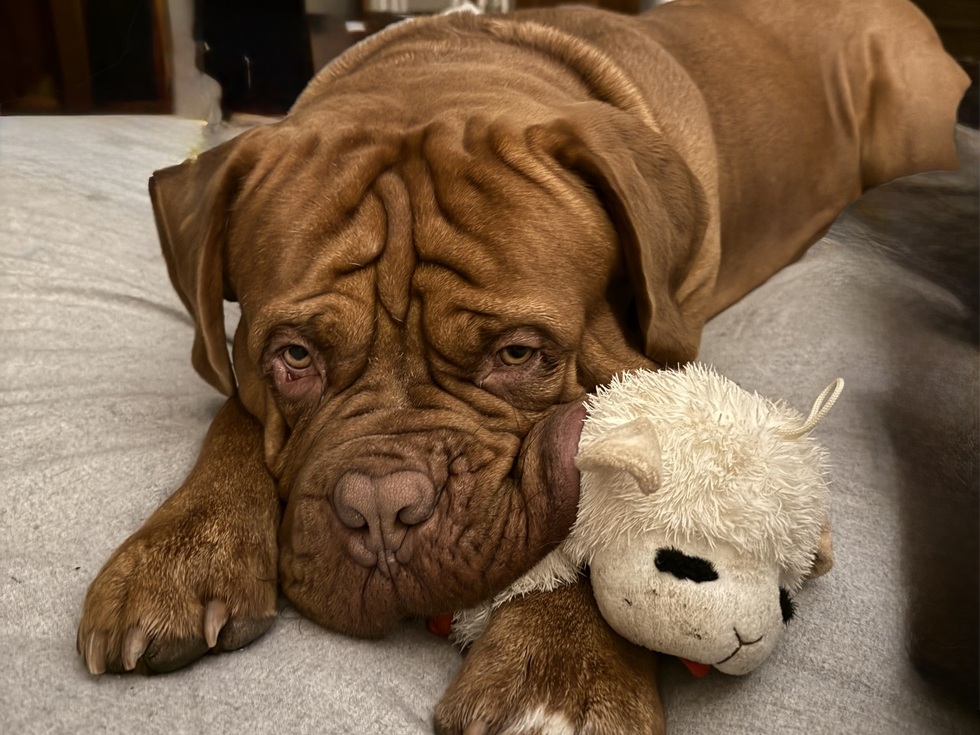 At three years old, Russett the Dogue de Bordeaux has perfected the art of being big, lovable, and just a little clueless. Known for his tendency to forget why he entered a room, Russett may not be the brightest pup on the blockābut he makes up for it with endless loyalty, gentle cuddles, and a face that could melt steel. One of his favorite things to do is walk through your legs to greet you. He also loves to leave puddles of drool around for you to step in. His favorite nap spot smack dab in the middle of the pool cover, no matter the time of year. He is also a master escape artist and can find the smallest opening to leave the yard to go on a walk-about through the neighborhood.