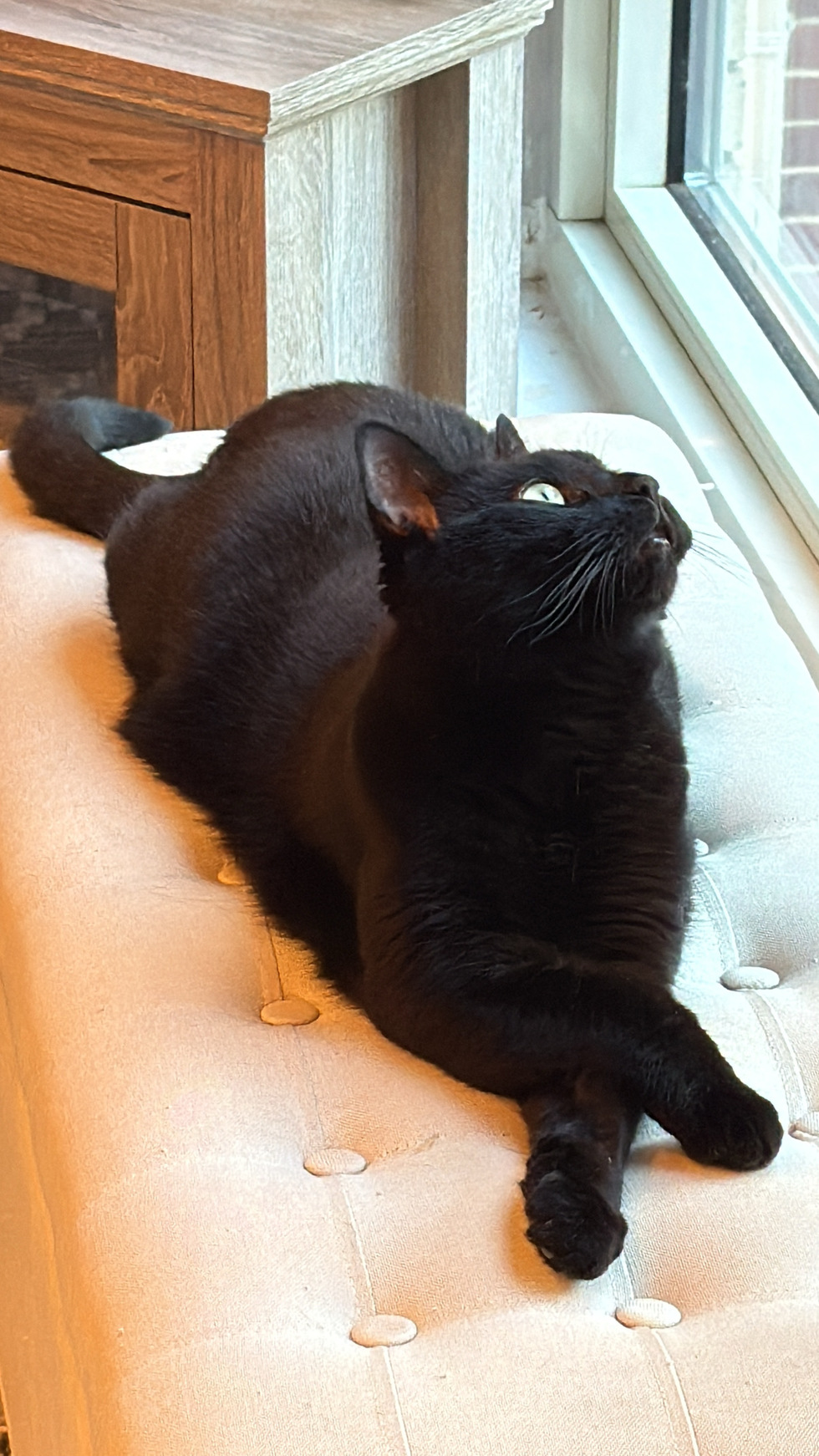 Roy spent 6 years of his life in his home before being surrendered, then spent some months in foster care with lots of other animals before settling in with me. It took some time for him to trust and feel safe and show his quirky personality, and after four years, he's learning to cuddle, use his words instead of his paws, and demonstrate to anyone who dares enter our castle who exactly rules here! His fan club is devoted and growing every day, and he's a shining example of the rewards of rescue, patience, and love.