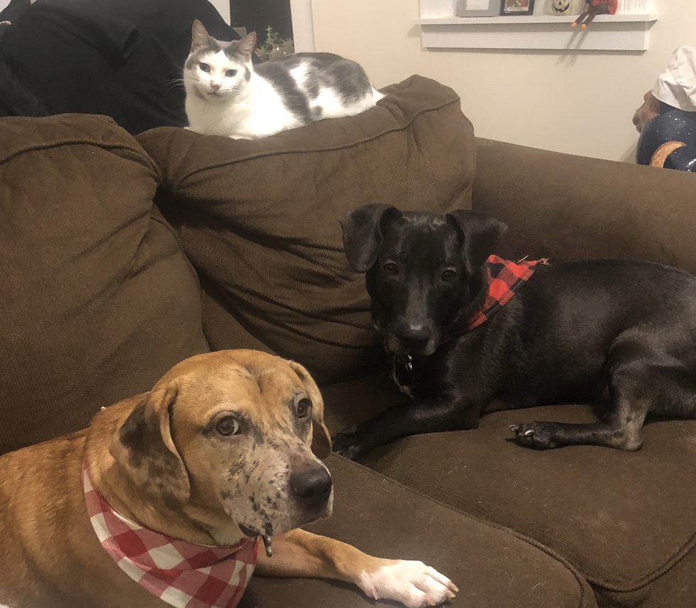 Harry and Henry were adopted together from paws crossed in 2019. They joined Richard the cat who they quickly became friends with. They enjoy long walks through the Rockefeller preserve and sleeping on the couch with their humans.