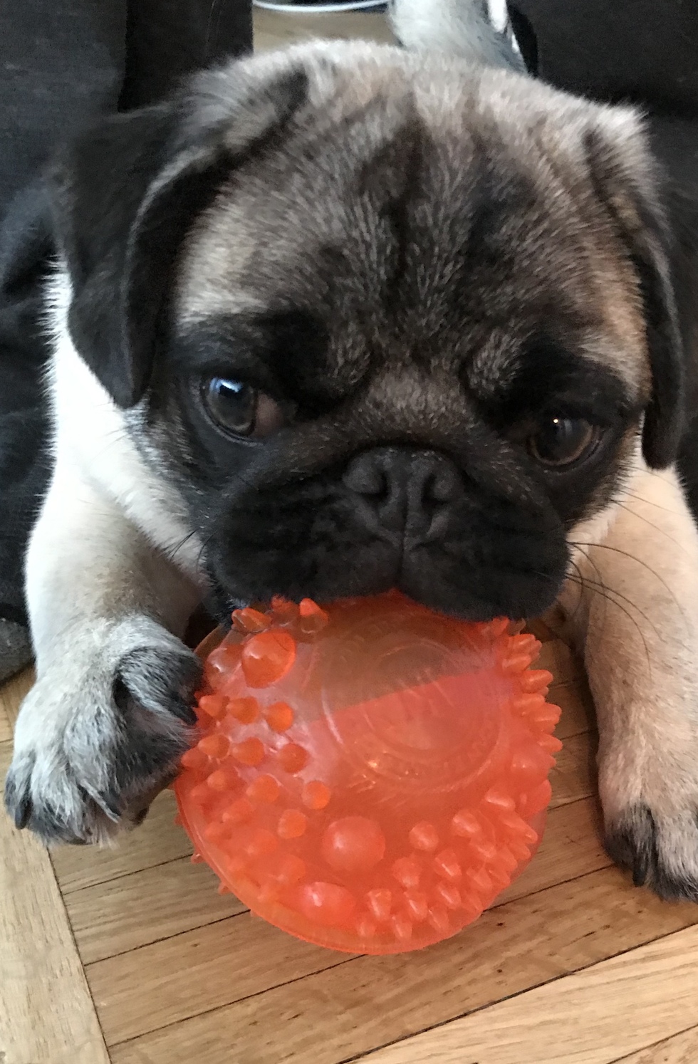 Dusty the Pug came to us just prior to the pandemic and has made her forever home in Tarrytown. She is the sweetest girl who loves to give hugs and cuddles. She has a big personality and is very funny. Dusty loves to make new animal and human friends, and has a collection of stuffed animal toys that she likes to sleep with.