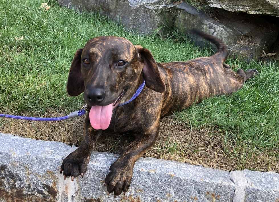 We adopted Bella from Paws Crossed on the 4th of July 2020. She is so sweet and so much fun, not to mention beautiful with her tiger-striped brindle coat and big smile. What a great dog we have.