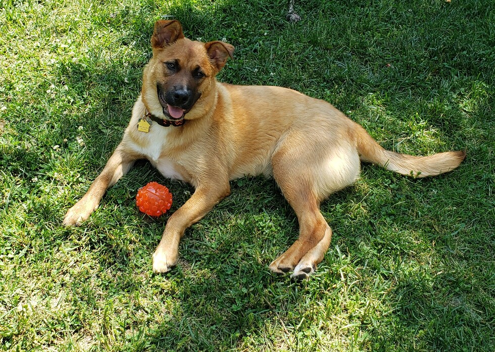 Adopted Ava from Paws Crossed. She ran over gave us kisses and rolled on her back for a belly rub - she had us at hello! She is a joy!