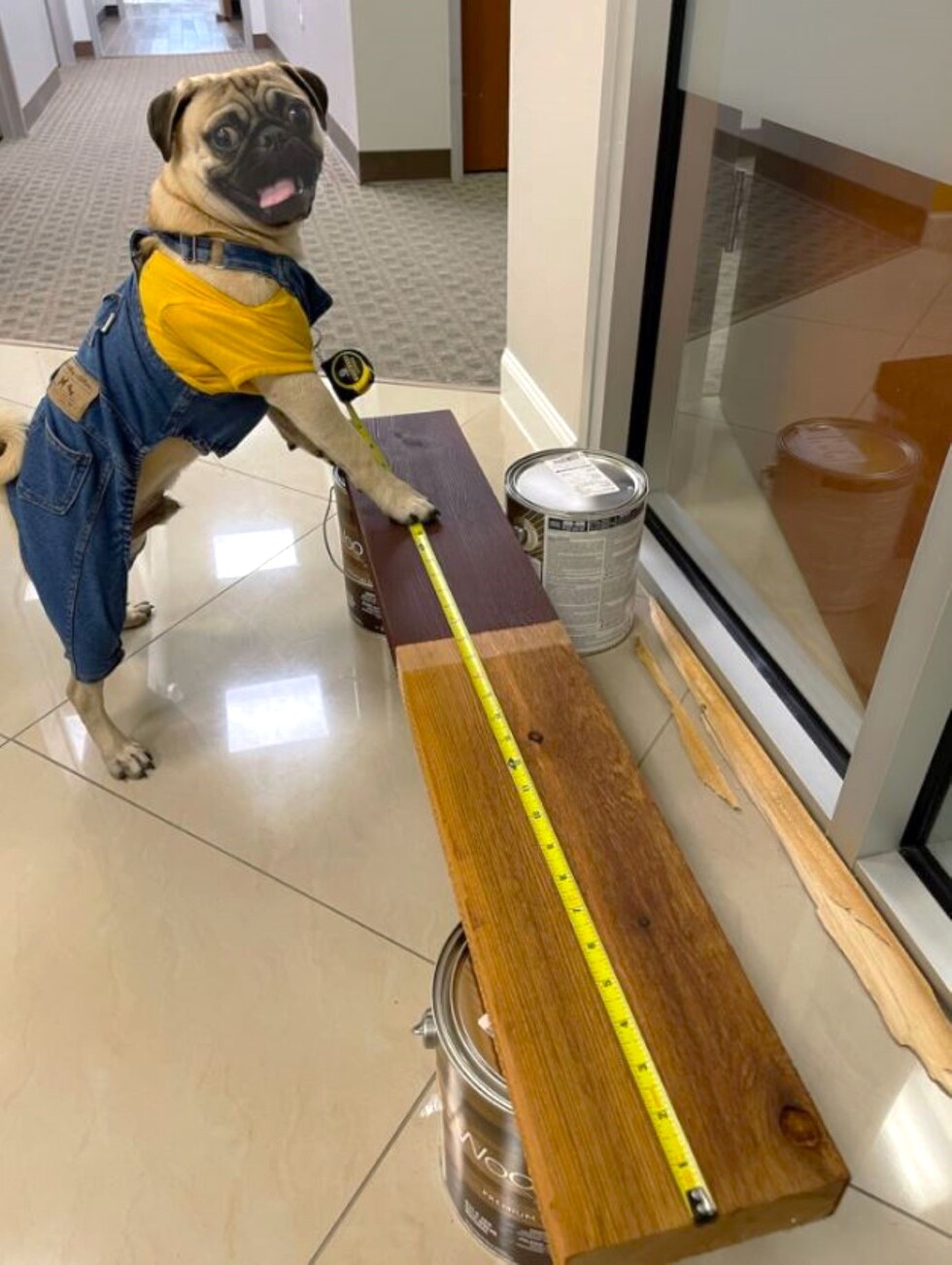 Gordo’s hobbies include going to work every day, playing ball with his coworkers, getting lovies, napping, and earning as many treats as possible. He’s also our fierce protector—never missing a moment to bark away any potential motorcyclist or bicyclist threats.