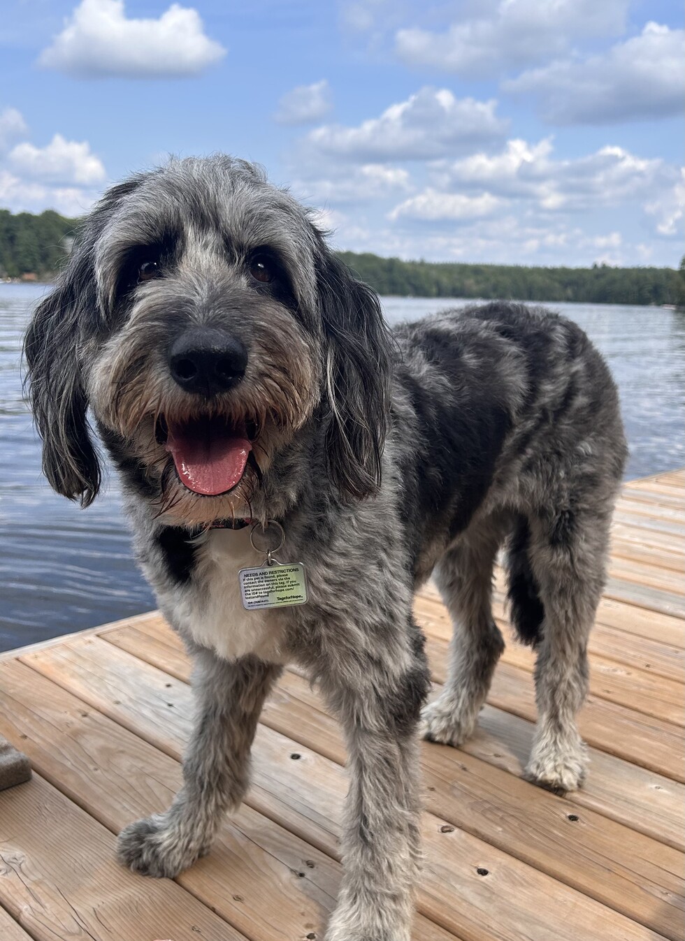 A little about me...Meet Molly - the blue merle Aussie doodle that’s equal parts goofball and athlete. Molly is happiest when she’s sprinting through the snow, rolling in the fall leaves, or diving off the dock. She’s always up for a car ride or an adventure, as long as she gets to go wherever her people are (and especially if her ball comes too).