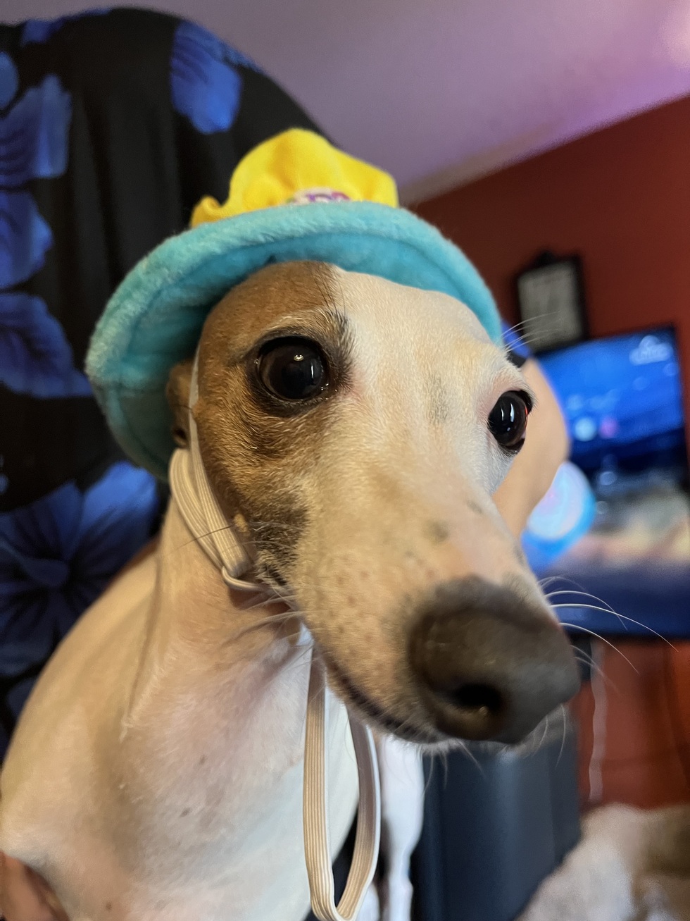 Bella ia a 2 1/2 years old and are Italian Greyhound. She's wild and crazy one minute and calm and loving the next. Oh yeah, she thinks she can FLY!
