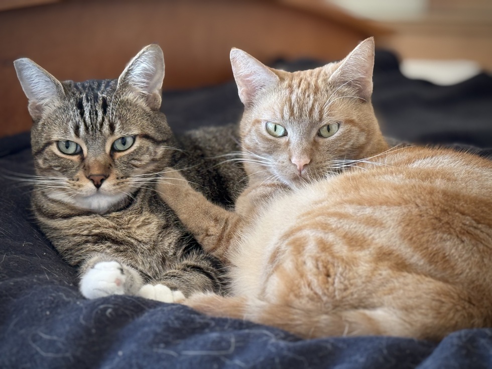 Goldie was a very young urban mom with very ill kittens and Gucci was deserted in a rural area. They both miraculously found their way to us and each other and are now an inseparable couple living their best life!
