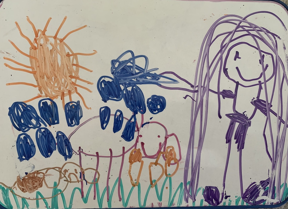 Short description about your artworkThis is a picture of my tutor giving her dogs Georgia and Sky a bath.