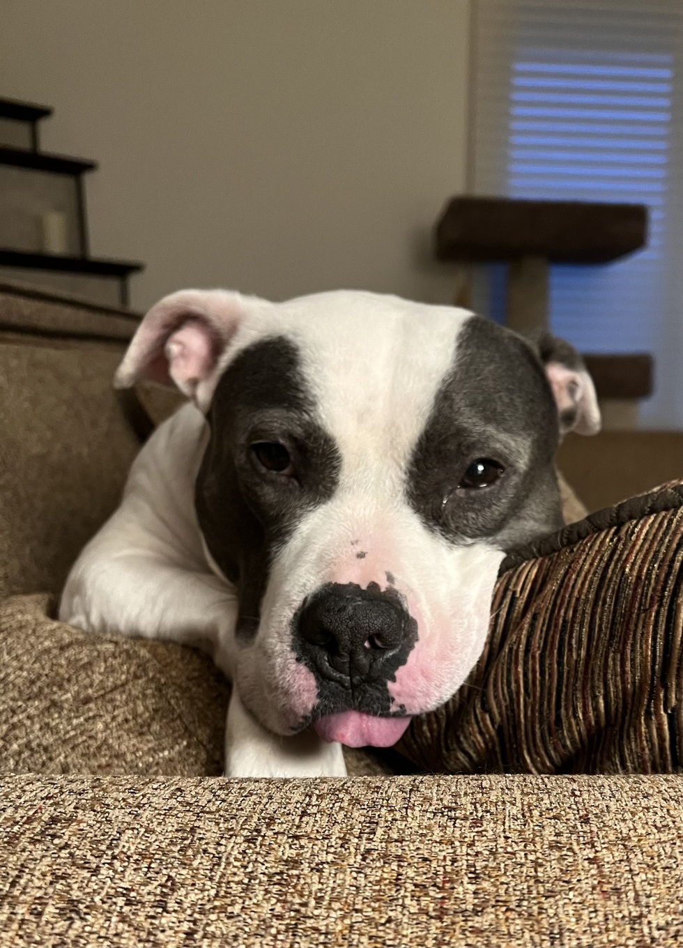 Tell us why your dog/cat should be our Rescue Brew spokesmodel.Dani is a seven year old who was surrendered to animal control because her family could no longer care for her. We feel so lucky to have found and adopted her! She is a big, powerful girl and looks like she’s tough, but nothing could be further from the truth. She is a gentle, joyful girl. Loves all people, kids, dogs and cats, plus she is super smart and goofy. And that tongue! Vote Dani!