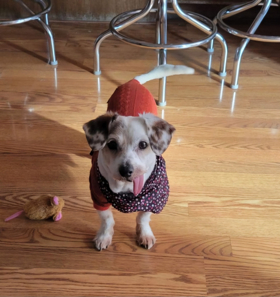 Tell us why your dog/cat should be our Rescue Brew spokesmodel.A senior dog at 13 years old, Wizard's silly and energetic spirit continues on. Although he no longer has teeth, he still loves to play with his favorite toy dinosaur. He enjoys taking naps with his two cat sisters, laying out in the sun, and trying on new sweaters. He truly embodies staying a kid at heart as one grows older 💗 He'd be honored to be your spokesdog!