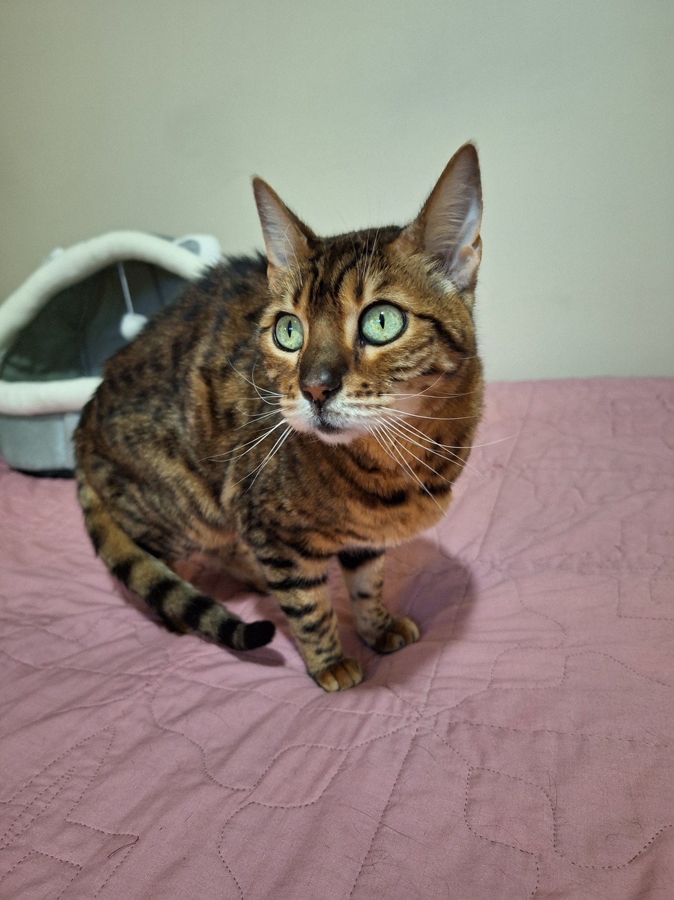 Sophie is a gentle soul who loves to express herself, as Bengals are known to do. I started fostering her in January and she has settled in very nicely with my other three cats, all of whom were adopted through PetitsPaws. She has moved around a little, but once she is ready to be adopted, she deserves to find a loving forever home. Please find it in your hearts to support the good work of PetitsPaws. Please support my sweet Sophie as a top pick in this fundraiser. Every dollar raised helps her, and others like her, to live their best lives.