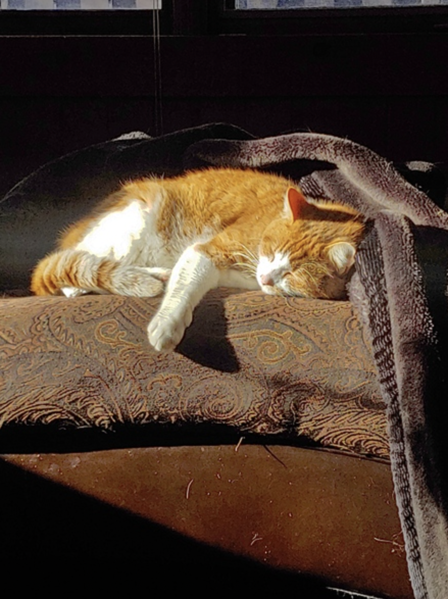 Poutine is no longer with us. This picture was taken days before his passing. He was a brilliantly adorable cat who warmed the heart of all who he came into contact with. He was shining light, only fitting I chose a pic of him sitting in the sun