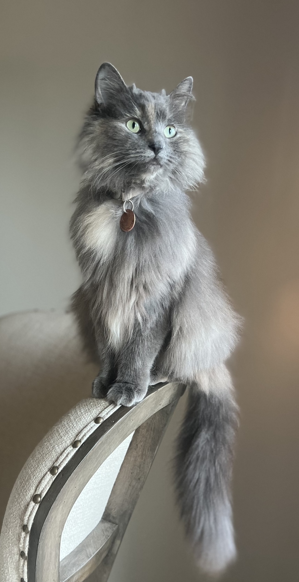 I adopted Freya from Pet Pride in February. She is the most majestic kitty I have ever met! She loves to come outside with me on her harness. Her favorite place to sit outside is in a giant concrete shell full of flowers on my deck. I now call it “Freya’s shell”. She is my soul kitty and I am so thankful to have her with me ♥️